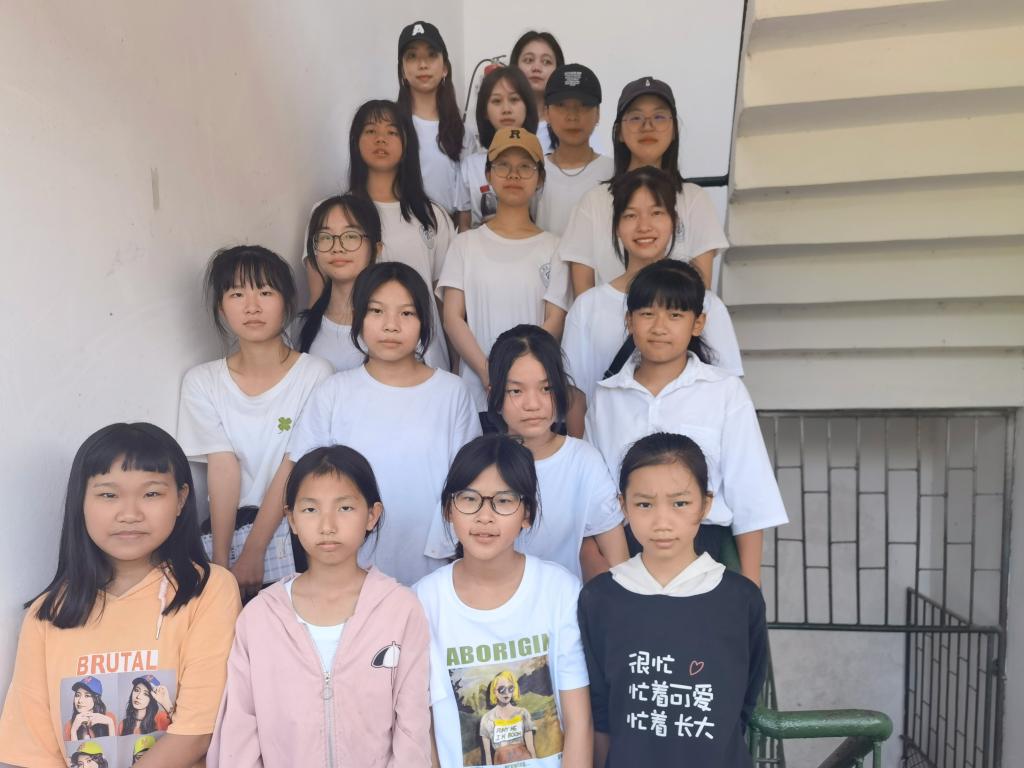 临走前,胜桥中学的孩子们与实践队员在宿舍楼道前合影