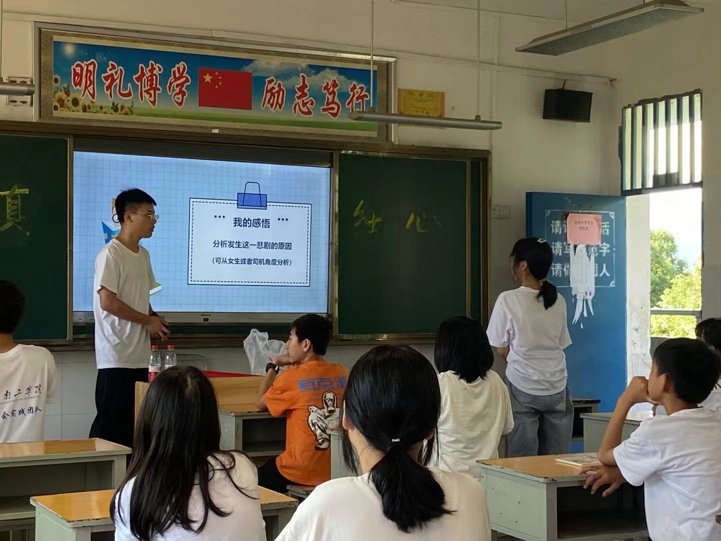 为了加强对留守孩子的安全教育,实践团队还围绕交通安全、人身财产安全、法制安全三个主题,开展安全知识有奖竞答等活动。通过观看安全教育宣传片,发放青少年自护宣传手册,组织安全知识竞答等,普及自防自救知识和法律法规,携手筑牢安全防线,为留守孩子的生命安全和身体健康保驾护航。