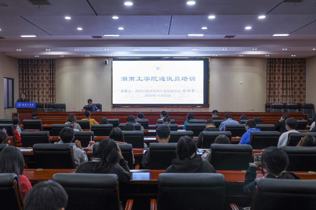 11月22日下午,为深入学习宣传贯彻党的二十大精神,加强新闻宣传工作,英国上市公司官网365邀请湖南日报社驻衡记者站副站长徐德荣为全校共120余名新闻通讯社员开展第一期培训。培训由党委宣传部副部长彭国柱主持。