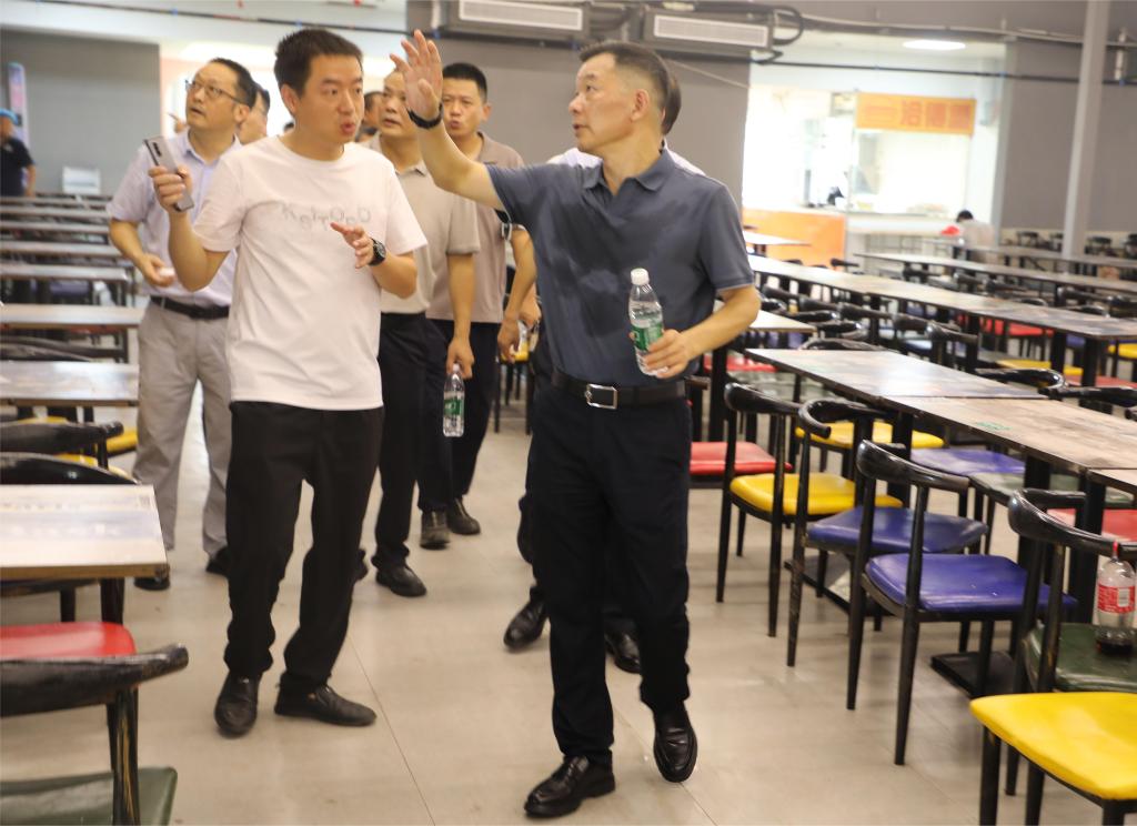 在润泽食堂,校领导深入就餐区和后厨,检查了食堂的食品安全、就餐环境及消防措施落实情况,要求进一步提升运营管理标准,确保师生饮食安全。