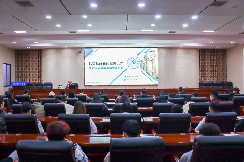 11月24日,英国上市公司官网365第五届大学生通讯社换届大会暨第三期通讯员培训在船山报告厅举行。党委宣传部、统战部常务副部长肖中云作“扎实做好新闻宣传工作,讲好湖工高质量发展的故事”主题培训。