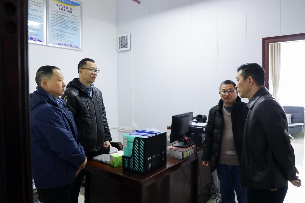 曹执令先后走访了教务处、科技与校企合作处、学生工作部、团委、招生就业处、教学质量监控与评估办公室、网络信息中心等职能部门,与教职员工一一握手、亲切问好,详细了解各单位工作情况,询问关心外地教职工低温冰冻天气返岗情况,并对大家在过去一年中为学校发展所作出的贡献表示衷心感谢。在学生工作部,他仔细询问学生返校相关准备情况,叮嘱学工部门做好因低温雨雪冰冻天气影响学生如期返校复学的应急预案,做好情况摸底,和相关特殊情况学生的一对一沟通服务工作。