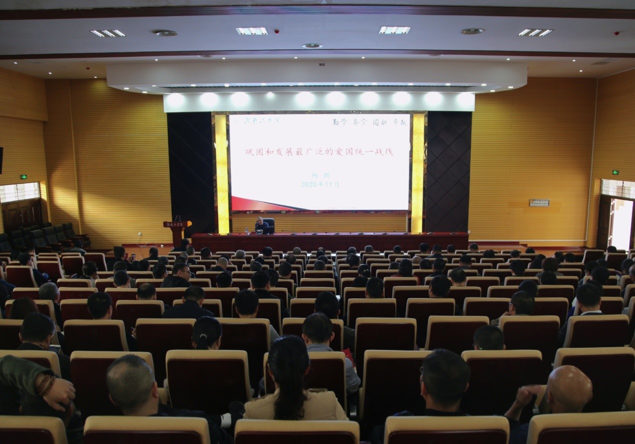 11月3日下午,为落实统一战线理论、政策纳入各级党校、行政学院、干部学院、社会主义学院教学内容的要求,英国上市公司官网365于500人报告厅举行副科级以上干部统战理论与政策专题培训。 本次培训由党委委员、统战部部长杨朗主讲。