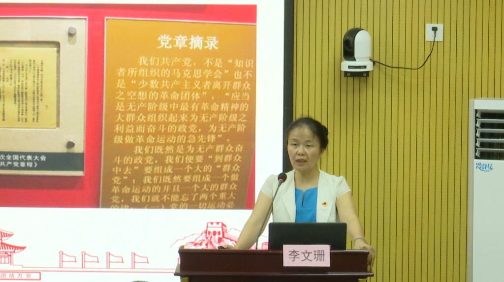 本次主题党日活动以重温党章为主要内容,由支部书记李文珊同志给全体党员上专题党课《认真学习党章、严格遵守党章》。