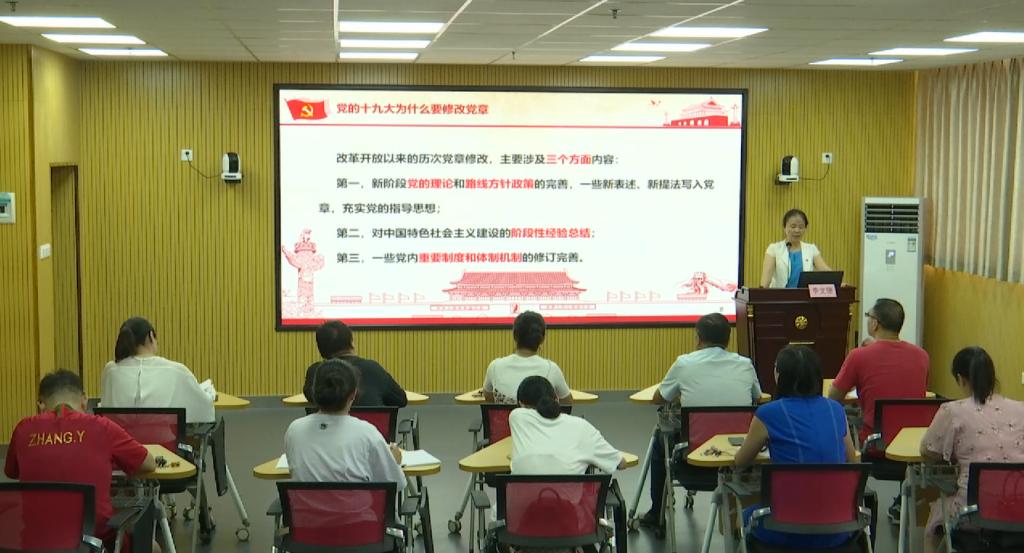 李文珊围绕党的十九大修改党章的原因、党章修正案修改的主要内容、如何贯彻落实好新党章三个方面展开了讲授。她细致详尽地梳理、讲解了新党章的各条内容,并将它与原党章做了对比,分析了修改的内容及原因。
