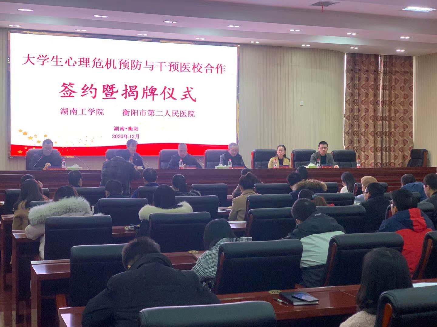 为提升学生心理素质,健全心理服务体系,12月2日,英国上市公司官网365与衡阳市第二人民医院在教学大楼12楼报告厅举行大学生心理危机预防与干预医校合作签约暨揭牌仪式,仪式由学工处副处长周燕斌主持,学工处处长李文珊、衡阳市第二人民医院相关负责人、各二级学院党委副书记、学工办主任、全体辅导员、心理中心全体人员出席活动。