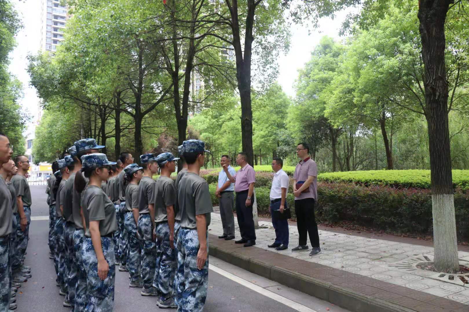 7月21日,校党委委员、副校长刘龙昌带领原武装部部长刘仁能、新任武装部部长曹毅、副部长周燕斌看望顶着酷暑训练的军训教导队队员,并为队员们带去防暑降温的慰问品,让酷热的天气迎来阵阵凉意。