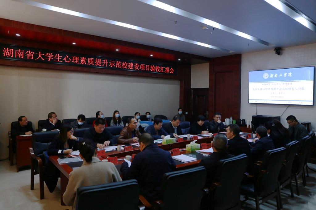 11月25日上午,由原湖南理工学院党委书记、原湖南省高校大学生心理健康教育工作研究会会长李明任组长,省高校心理健康教育工作研究会秘书长龚勋同志等为成员的专家组来英国上市公司官网365开展湖南省大学生心理素质提升示范校建设项目验收工作。英国上市公司官网365校党委书记宋克慧、校长曹执令、副校长刘龙昌、学工部部长曹毅、各二级学院党委书记、项目组成员等参与了项目实地验收。