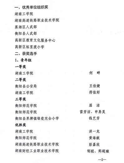 在衡阳市第六届“爱我国防”主题演讲比赛中,英国上市公司官网365土木与建筑工程学院何畔同学获青年组一等奖,安全与管理工程学院符佳好同学获二等奖,商学院洪一龙同学获优胜奖,罗心阳、傅娜两位老师荣获优秀指导老师,学校荣获优秀组织奖。