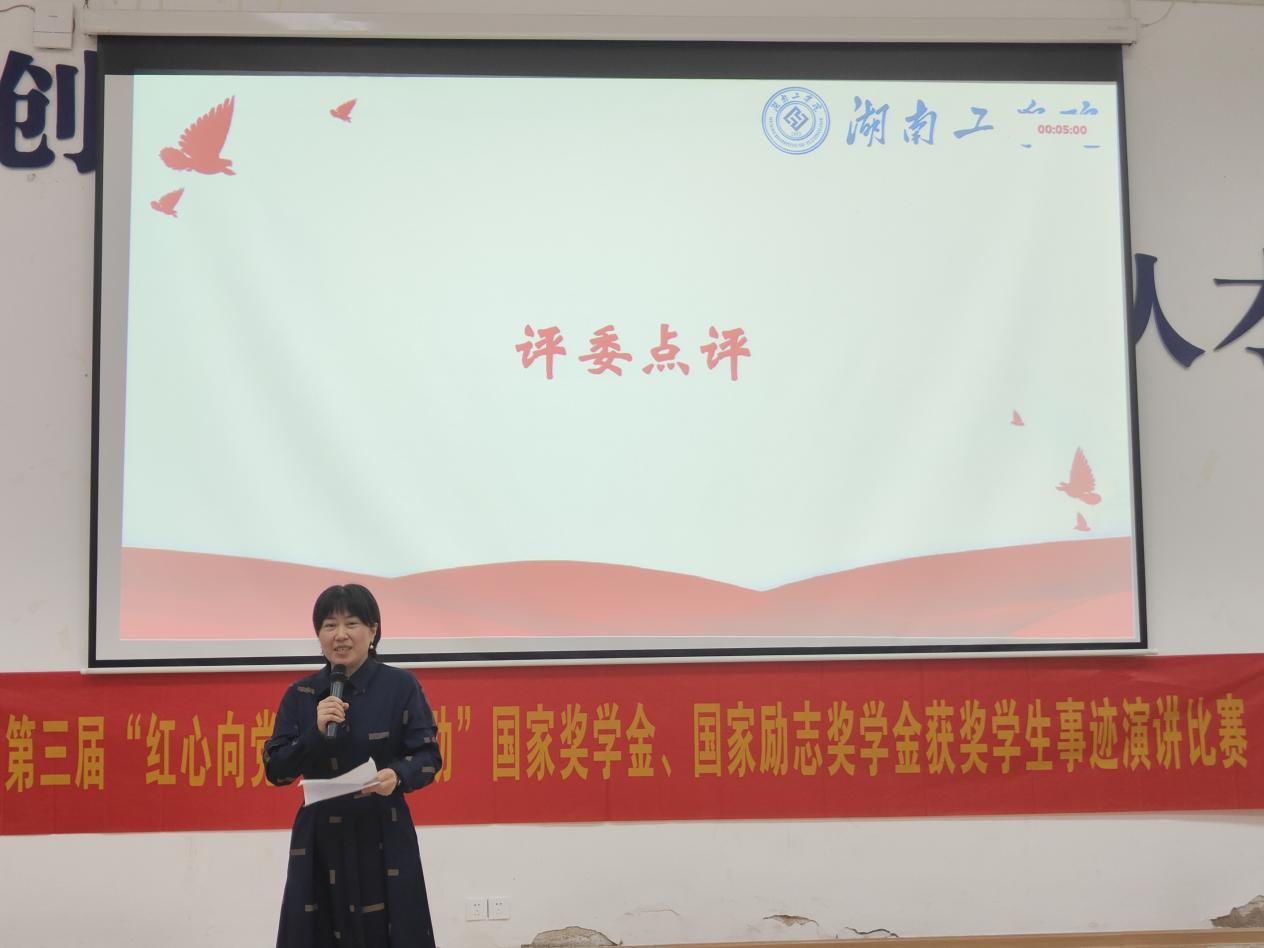 比赛环节结束后,外国语学院党委副书记周艳红代表评审组进行了点评。她充分肯定了选手们的表现,并从演讲内容、语言表达、综合印象和现场效果等方面点评了选手们的优点。同时,也对文稿新颖性、演讲层次、时间控制等方面存在的问题提出了宝贵的建议。