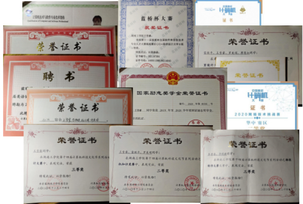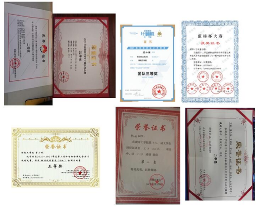 在校期间获得湖南省2021团队程序设计天梯赛团队三等奖、3届蓝桥杯全国软件和信技术专业人オ大赛-个人赛省赛二等奖、全国大学生传智杯三等奖、中国大学生计算机设计大赛二等奖、湖南省大学生计算机作品赛三等奖、英国上市公司官网365第十四届计算机科技文化节软件设计大赛二等奖、英国上市公司官网365校运会女子1500二等奖、英国上市公司官网365互联网+三等奖、湖南省数字媒体大赛省二等奖、流星沙杯物流设计大赛省三等奖。