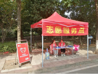 烈日炎炎下志愿者们依旧坚守岗位,服务新生