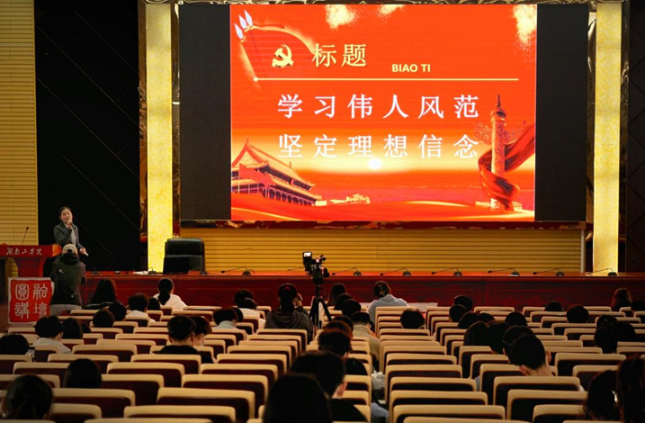 毛红卫老师以《学习伟人风范,坚定理想信念》为题,围绕廉洁无私的奉献精神 、艰苦朴素的生活作风 、积极健康的兴趣爱好、慈严并重的亲情关系四个方面阐述了毛泽东精神的深刻蕴涵。伟人的一生,就是一部读懂初心使命的教科书。一幅幅真实的照片、一个个鲜活的实物、一幕幕感人的图景,无不在诉说着人民领袖身上的魅力、气质与初心。一件打满补丁的睡衣、一个永远舍不得用的烟嘴、几张淡淡泛黄的字条……平凡朴实的生活,映照着一位伟人的精神魅力。