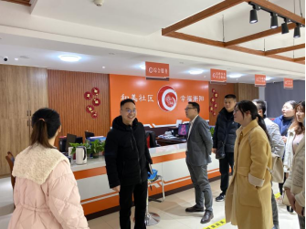 在社区党支部负责人的引导下,校团委一行首先参观了清泉山社区办公服务场地建设情况。居民服务接待窗口、党建学习书屋、文体活动室……