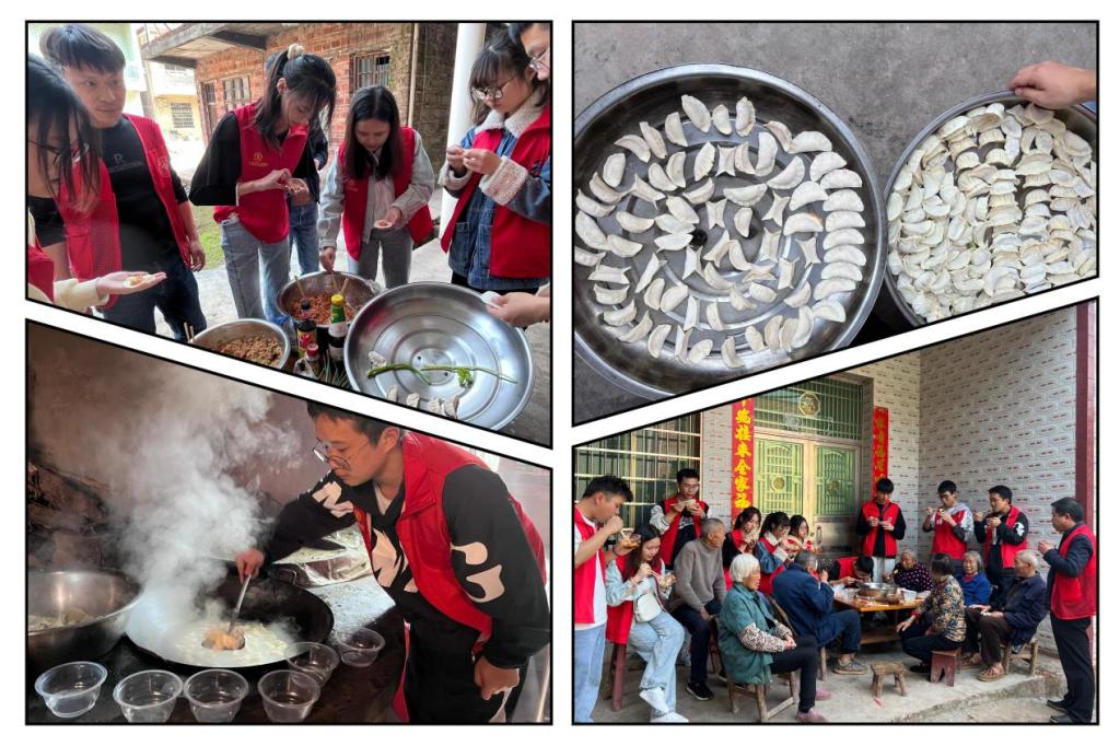 为确保“爱心饺子”数量和质量,志愿者们凌晨5点起床采购原材料,搭乘最早一班车到达目的地。一到现场,摆放工具、搅拌馅料、调试味道...热火朝天地干着准备工作,只为亲手给老人们做一顿充满温暖与爱意的午餐。在志愿者们两个小时的努力下,300多个热气腾腾的爱心饺子出炉了。大家围坐在一起,吃着饺子、拉着家常。看着老人们津津有味吃着我们亲手准备的饺子,再累也值得了。