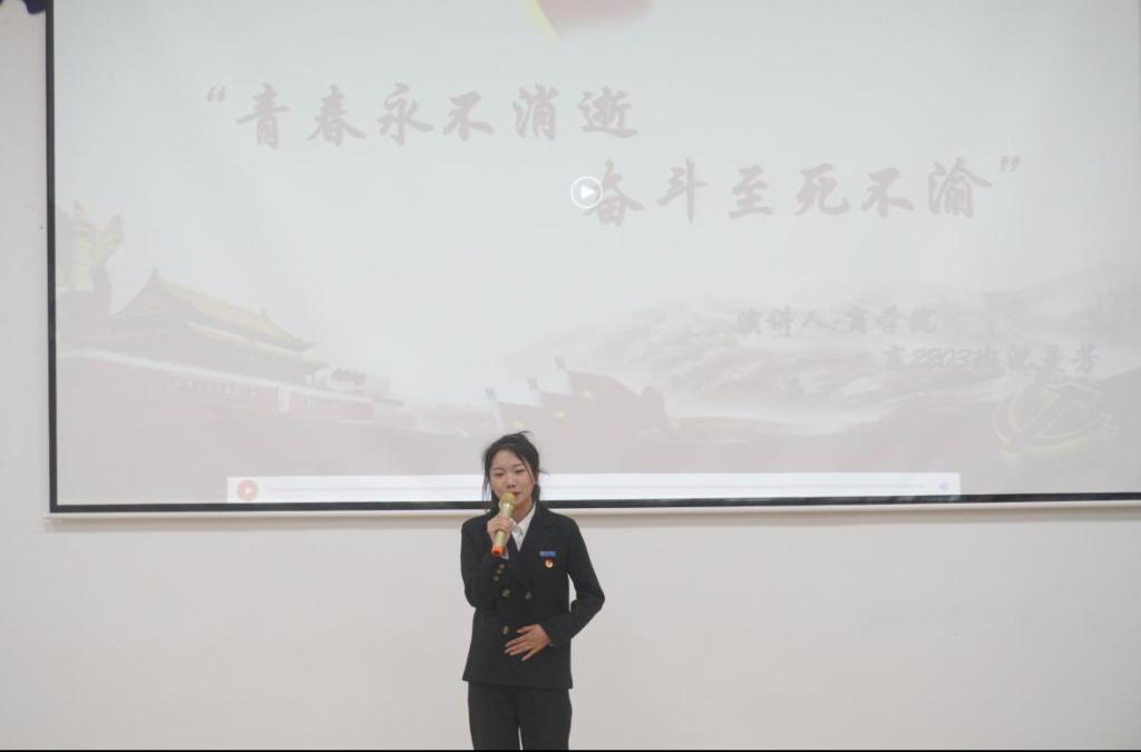 各二级学院前期进行了初赛,共推选出10名选手参加本次学校决赛。决赛选手们通过精美的PPT、配乐、视频等形式,紧紧围绕“奋斗者·正青春”这一主线,结合自身经历,讲述奋斗故事、奋斗成就、奋斗榜样、奋斗精神。现场氛围热烈,选手们的精彩表现不时迎来观众阵阵掌声。