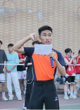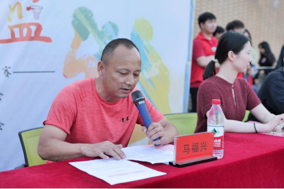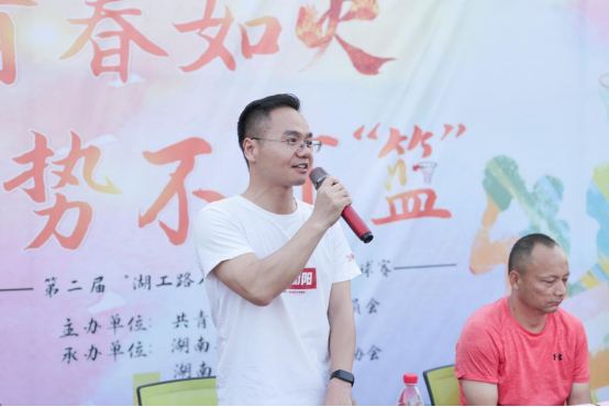 贺令亚宣布第二届“湖工路人王”卓越杯3V3篮球赛开幕。