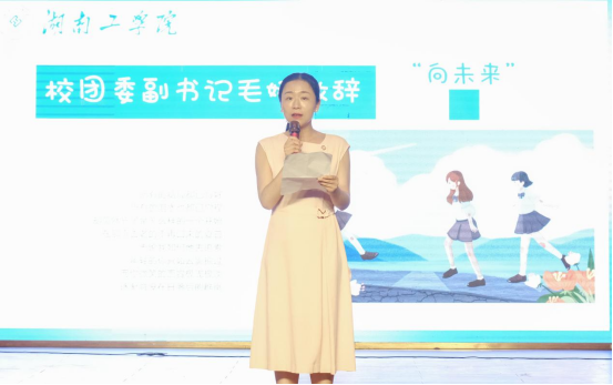 晚会由校团委副书记毛娜致辞,她回顾总结了过去一年的团学工作,她表示现在青春是用来奋斗的,将来青春是用来回忆的。她祝福大四同学们在今后的人生道路上以最好的人生姿态迎接未来的每一次挑战;感谢大三同学们的辛勤付出与出色表现;鼓励大一、大二同学们继续坚守在一线工作岗位,用坚定的脚印走出一条坚实宽阔的成才之路。