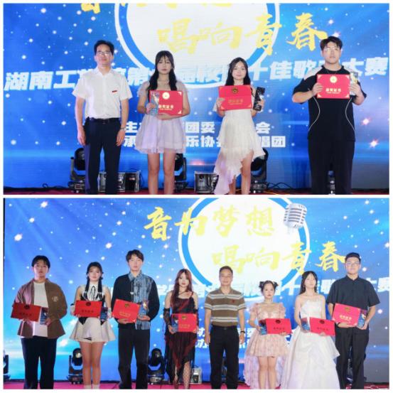 经过激烈的角逐,计算机科学与工程学院数据2202班钟东方;商学院国贸2203班甘馨贻;计算机科学与工程学院数据2101班欧阳楚豪;商学院国贸2101班贺迁慧;外国语学院翻译2203班霍抒含;安全与管理工程学院物管2201班钟点典;计算机科学与工程学院网络2101班张旭东,7位同学获得“十佳歌手”荣誉称号。智能制造与机械工程学院成型2002班赵鑫龙;商学院国贸2101班蒋伟红;安全与管理工程学院工业2102班王仔容,分别获得冠、亚、季军。