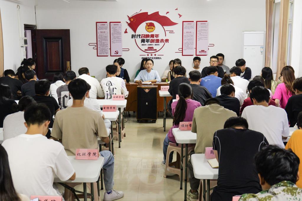 9月21日晚,校团委在创业园三楼308室召开2023-2024学年新学期校院两级团学组织工作会议。校团委老师,校院两级团委、学生会学生骨干成员参加会议。校学生会主席团成员宋文东主持会议。