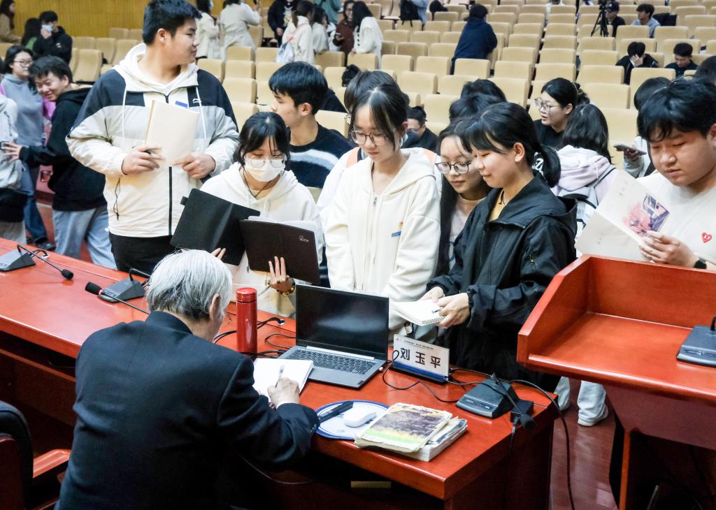 “您的父母对您影响最大的是什么呢?”“面对父亲放弃优渥生活投身革命,您和母亲会有不理解的地方吗?”……同学们抓住机会踊跃提问,课后纷纷找刘教授签名、合影,瞬间秒变大型追星现场,“我拿到刘教授的名片喽!”同学们拿着手中的名片开心地挥舞着。