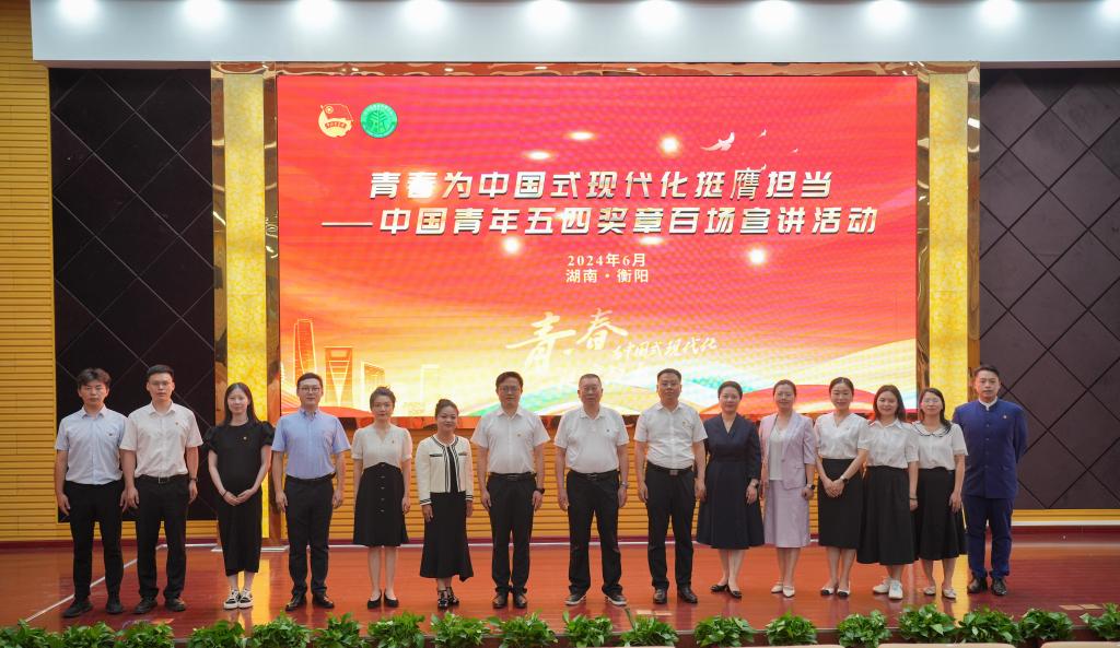 6月21日,“青春为中国式现代化挺膺担当”——中国青年五四奖章百场宣讲活动(衡阳场)在英国上市公司官网365明翰报告厅举办。团省委副书记夏彬华,校党委委员、副校长刘龙昌出席,团省委相关部室及团市委负责同志,学校各二级学院(部)党委副书记及团委书记、青年师生代表等500余人参加,活动由校团委书记毛娜主持。