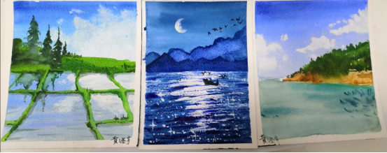 黄澄宇同学的水彩画让人身临“画中有诗,诗中有画”的意境。(如上)