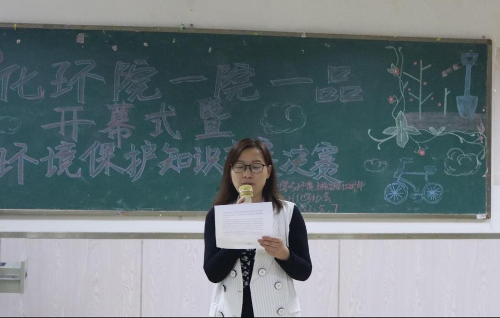 最后,蔡玲对本次大赛做总结致辞她希望大家将这种竞赛氛围带到学习中去,带动更多的同学接受并学习新知识,在自己的专业上创造更好的成绩,同时也要将环保意识落实到生活当中,带动身边的人学习环保知识,为环保事业献出一份力。