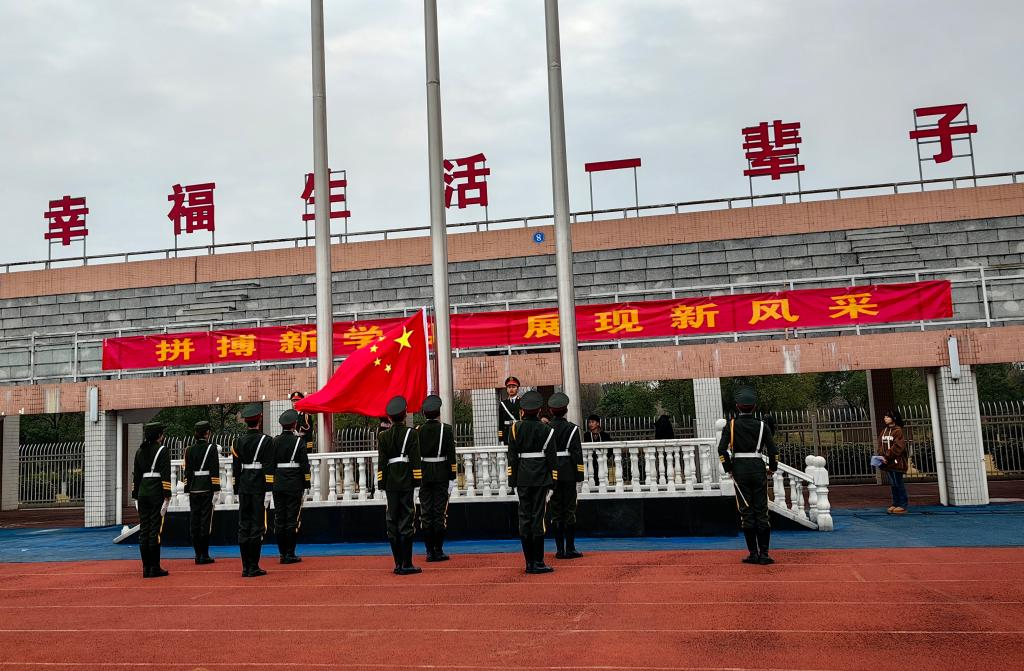 踏着晨曦,迎着朝阳,英姿飒爽的国旗护卫队队员迈着矫健的步伐护送国旗入场,伴随国歌奏响,全体师生行注目礼,在庄严的国歌旋律中注视着国旗冉冉升起,以昂扬的姿态,开启春季学期新征程。