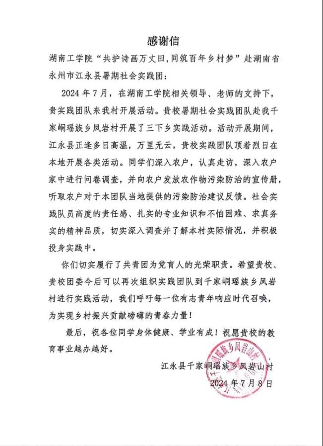 此次英国上市公司官网365化学与环境工程学院“三下乡”社会实践活动,不仅是一次知识的传递与技术的推广,更是一场心灵的洗礼与责任的担当。师生们以实际行动践行了“学以致用,服务社会”的崇高理念,为江永县的乡村振兴贡献了青春的智慧与力量,同时也为自己的人生旅程增添了宝贵而难忘的经历。(文/周珈韬 图/翟秋悦、赛伊拜 一审/陈凌霄 二审/蔡玲 三审/周立)
