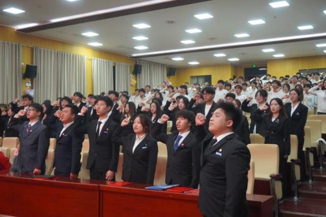 第四届学生会主席李嘉辉带领全体团学会成员宣誓。随后,大家一同观看了由第四届分团委学生会带来的特色视频。