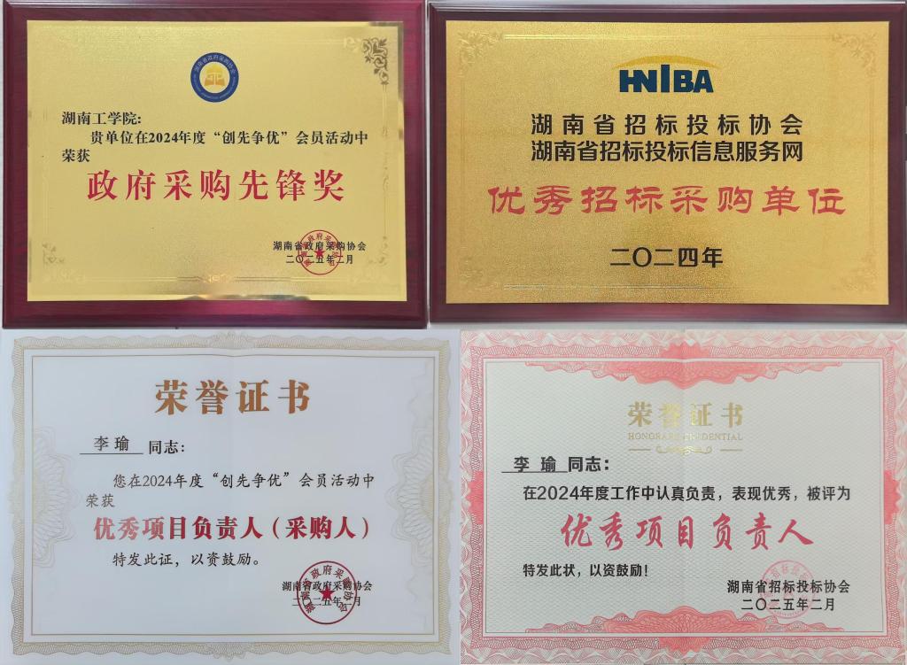 此外,英国上市公司官网365招标招投标管理办公室李瑜同志同时荣获了招标投标协会“2024年度优秀项目负责人”称号和湖南省政府采购协会“2024年度优秀采购人”荣誉。